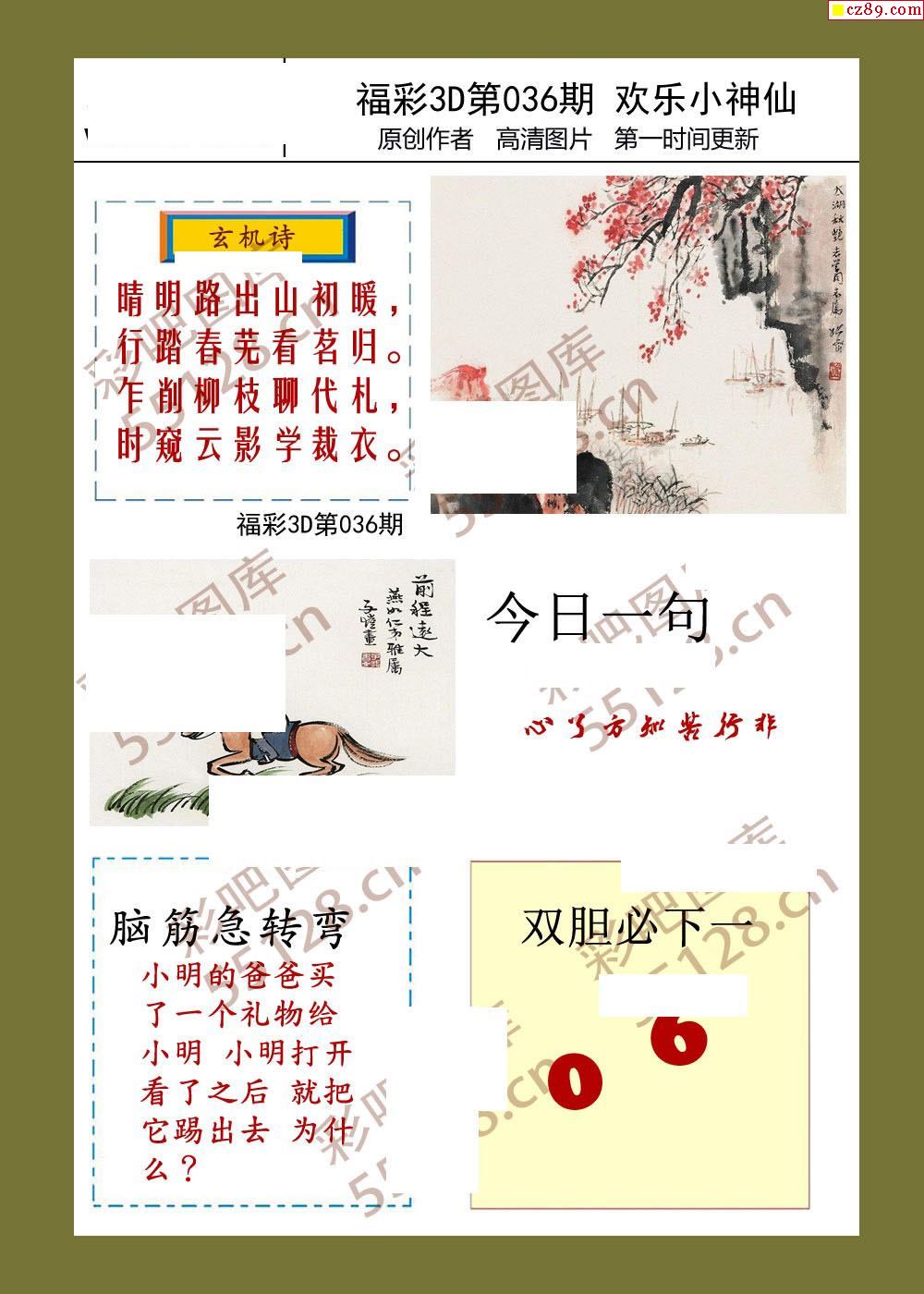 26年福彩3d036期欢乐小神仙预测图